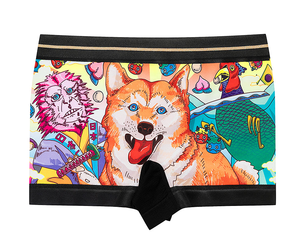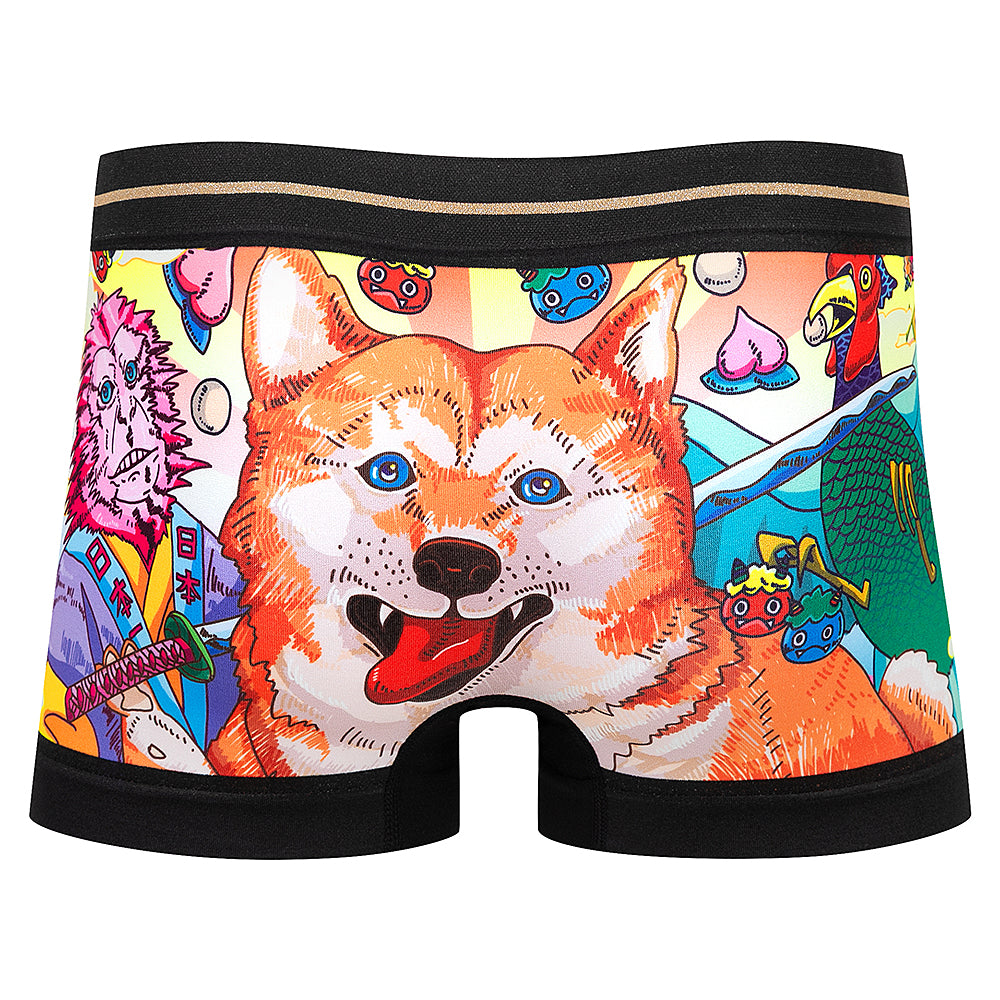 led by a smiling Shiba Inu,